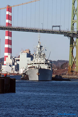 HMCS Halifax dropped her lines and set sail.